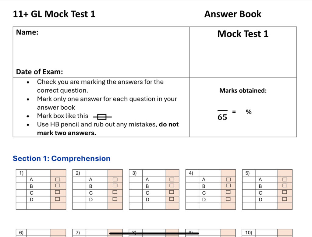 Each pack has been researched so that we get very close to the exam style questions of what your child will face on the day itself. This involves building papers split into 4 sections with the right practice and example question structure and of course the right timing and number of questions. The intent is that your child will get a very good idea of the type of paper they will face on the day. Our all the papers are unique.
